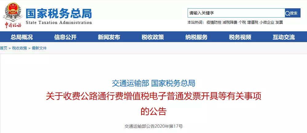 近日,交通部發(fā)布《交通運(yùn)輸部 國家稅務(wù)總局關(guān)于收費(fèi)公路通行費(fèi)增值稅電子普通發(fā)票開具等有關(guān)事項(xiàng)的公告》,公告對收費(fèi)公路通行費(fèi)增值稅電子普通發(fā)票(以下簡稱通行費(fèi)電子發(fā)票)開具等有關(guān)事做出了具體說明,新規(guī)將于4月1日起正式實(shí)施。